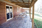 Cabin 7 is one of our closest cabins to Elk River. Featuring two queen size bunk beds and two full size beds, this cabin’s three bedrooms comfortably accommodate a group of twelve. Cabin 7 has a beautiful rustic interior comprised of attractive wood paneling. Plus, the property has a lovely covered porch overlooking the river!